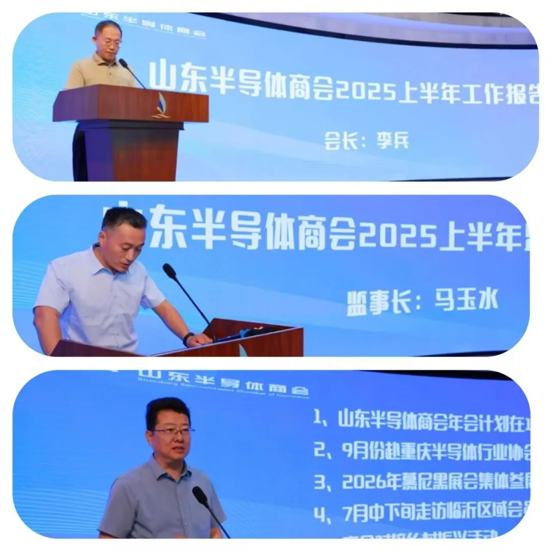 在會議中,李兵會長做了商會2025年上半年工作總結和下半年工作計劃報告,就政策研究、商會建設、會員服務、行業(yè)及會員企業(yè)調研考察、展覽推廣、社會公益等幾個方面對商會上半年的工作進行了詳盡總結,對下半年的工作進行了計劃安排,并對在當前半導體行業(yè)面臨巨大挑戰(zhàn)和機遇,存在巨大不確定性的局面下,加強行業(yè)團結、促進會員之間、其它兄弟企業(yè)之間供應鏈、生態(tài)鏈建設提出了倡議;馬玉水監(jiān)事長做了商會監(jiān)事會工作報告,就監(jiān)事會上半年的具體工作和監(jiān)察結果向會議做了說明。商會副會長兼秘書長徐文匯主持會議,并就今年下半年商會年會、參展推介、走訪交流、社會公益等方面的具體工作做了說明和安排。濟南槐蔭經(jīng)濟開發(fā)區(qū)相關領導同志、商會專家委員會主任王卿璞教授、專家委員會委員楊志偉博士應邀出席會議并就相關會議主題做了主旨演講,部分參會理事單位代表結合本單位實際分別作了介紹和交流發(fā)言。